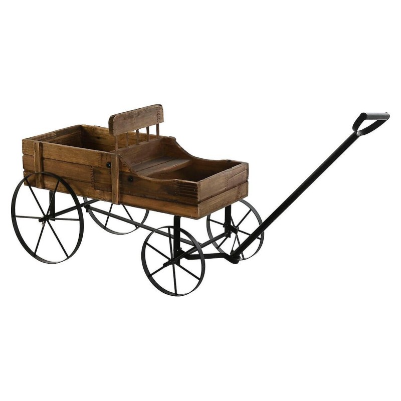 Chariot de jardin DKD Home Decor Noir Marron foncé Bois Métal Sapin Bois recyclé Bois de sapin 60 x