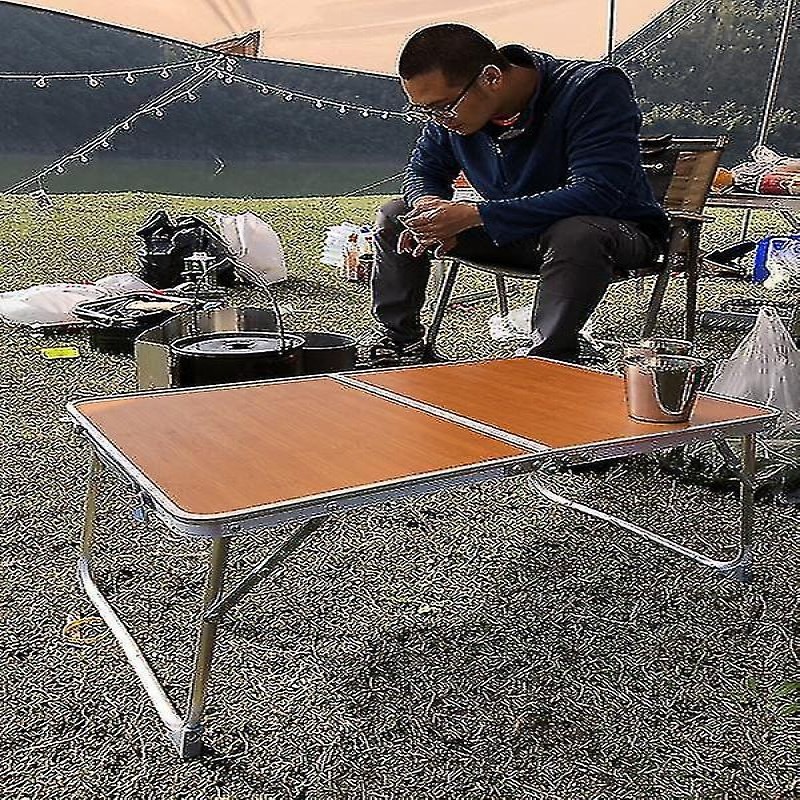 Table de camping pliante en alliage d'aluminium pour l'extérieur (couleur bois)