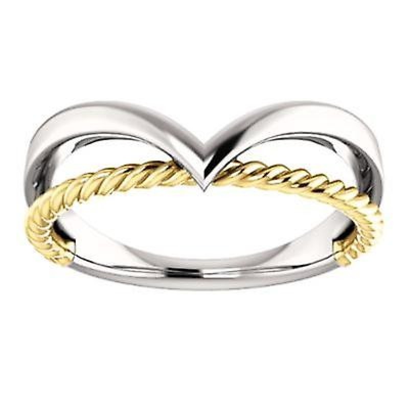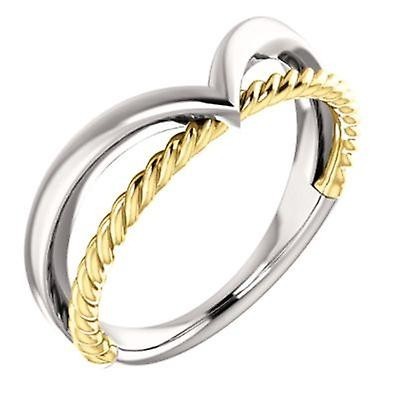 Bague en or blanc 14 carats et or jaune poli avec corde à espace négatif, taille 6,5, bijoux cadeaux €1250.0 |